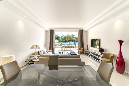 Entre le Carlton et le Martinez, sur la Croisette, rue iconique de Cannes avec ses étendues de plage et ses magasins de luxe, cet appartement jouit d'un emplacement unique.
